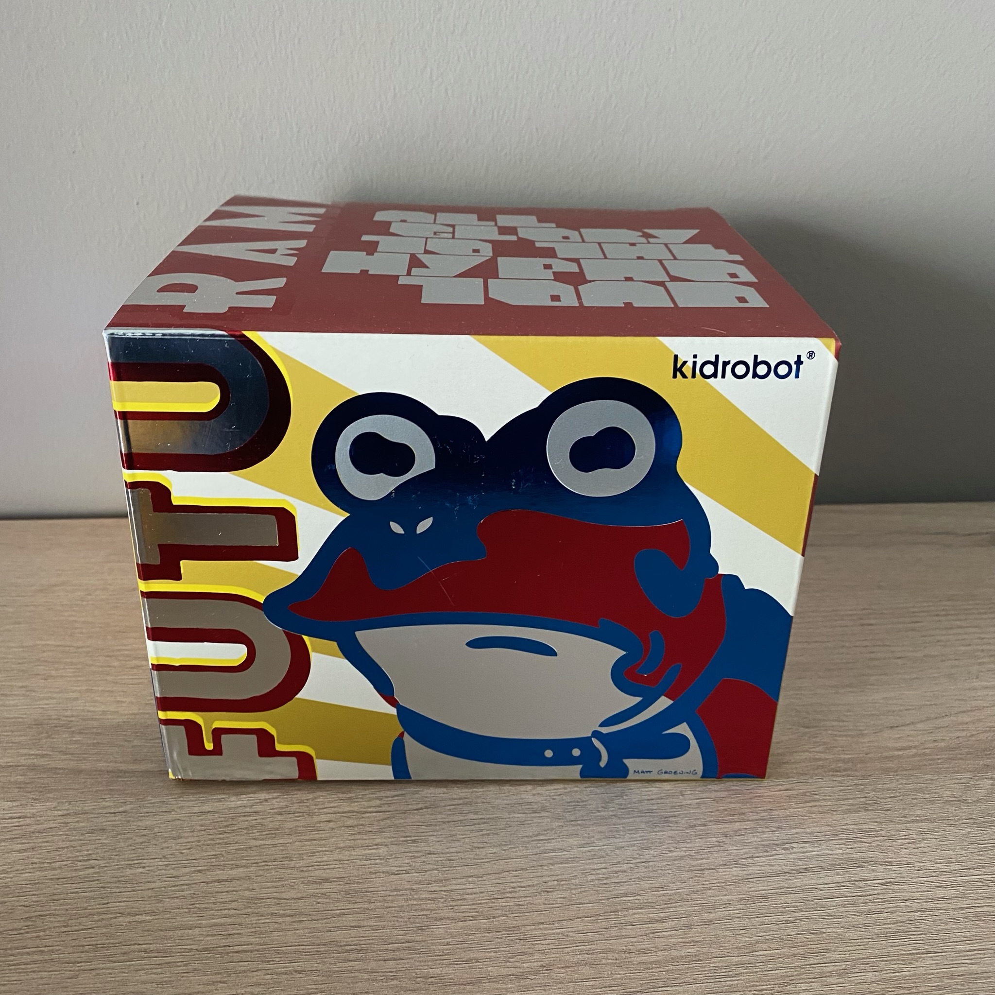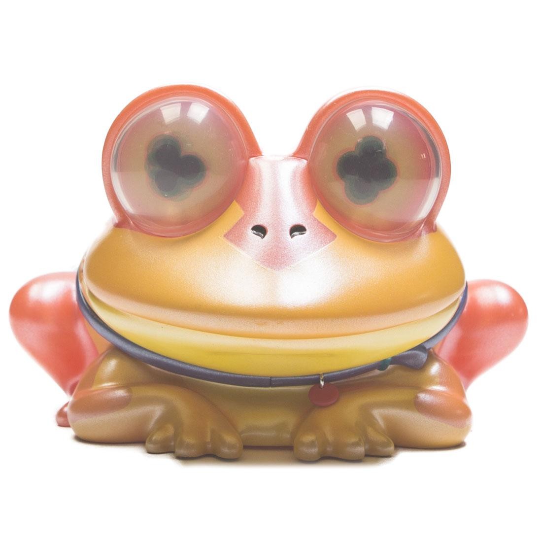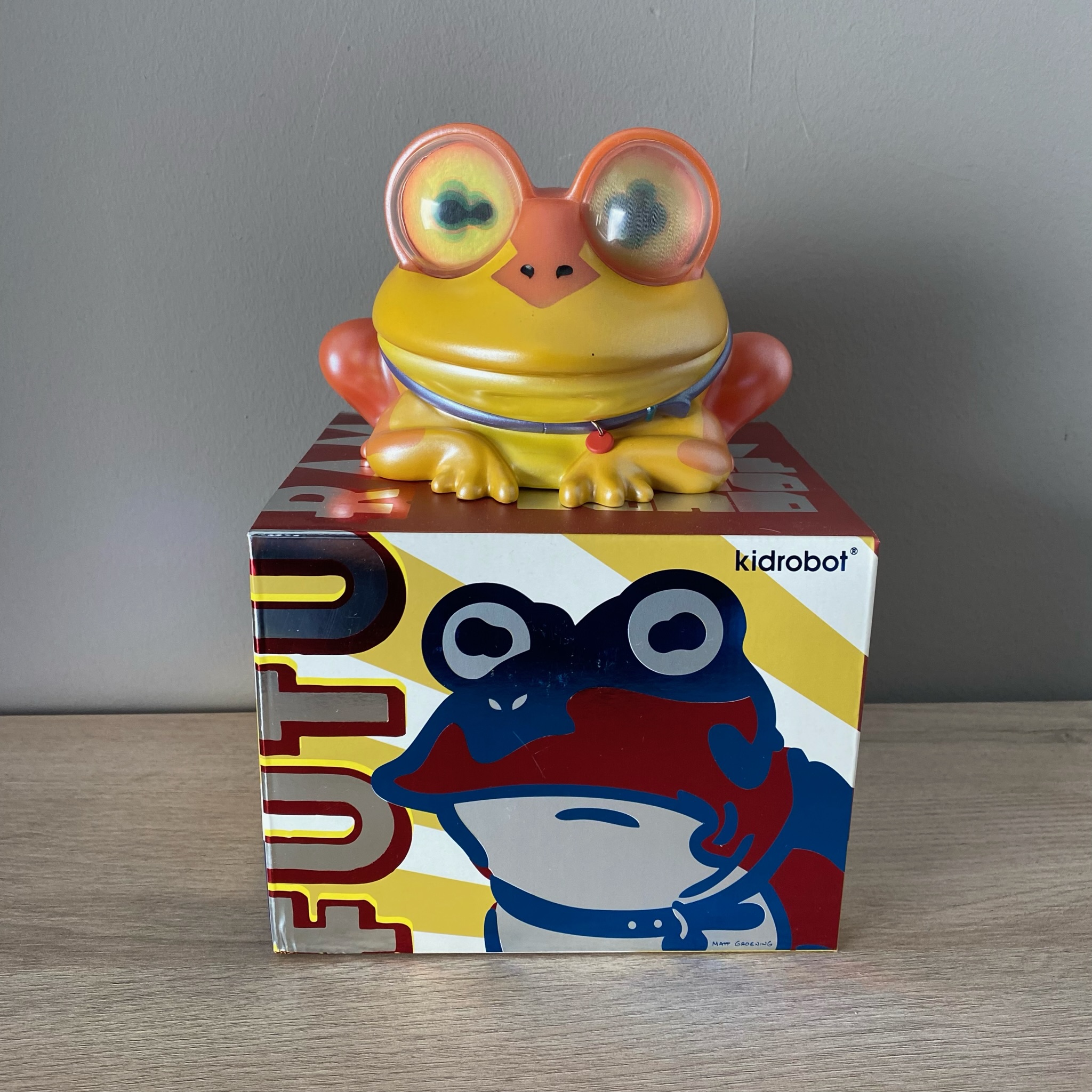 Features: The Hypnotoad is a large toad-like creature that has large oscillating multicolored eyes, and emits a droning hum. His eyes glow all the time. The toad apparently uses these as a power of hypnotism on surrounding people and animals.Kidrobot is excited to bring you an this metallic orange vinyl version of the Futurama All Hail Hypnotoad 6-inch Metallic Art Figure. This toad uses his lenticular eyes as a power of hypnotism on people and animals that surround him.