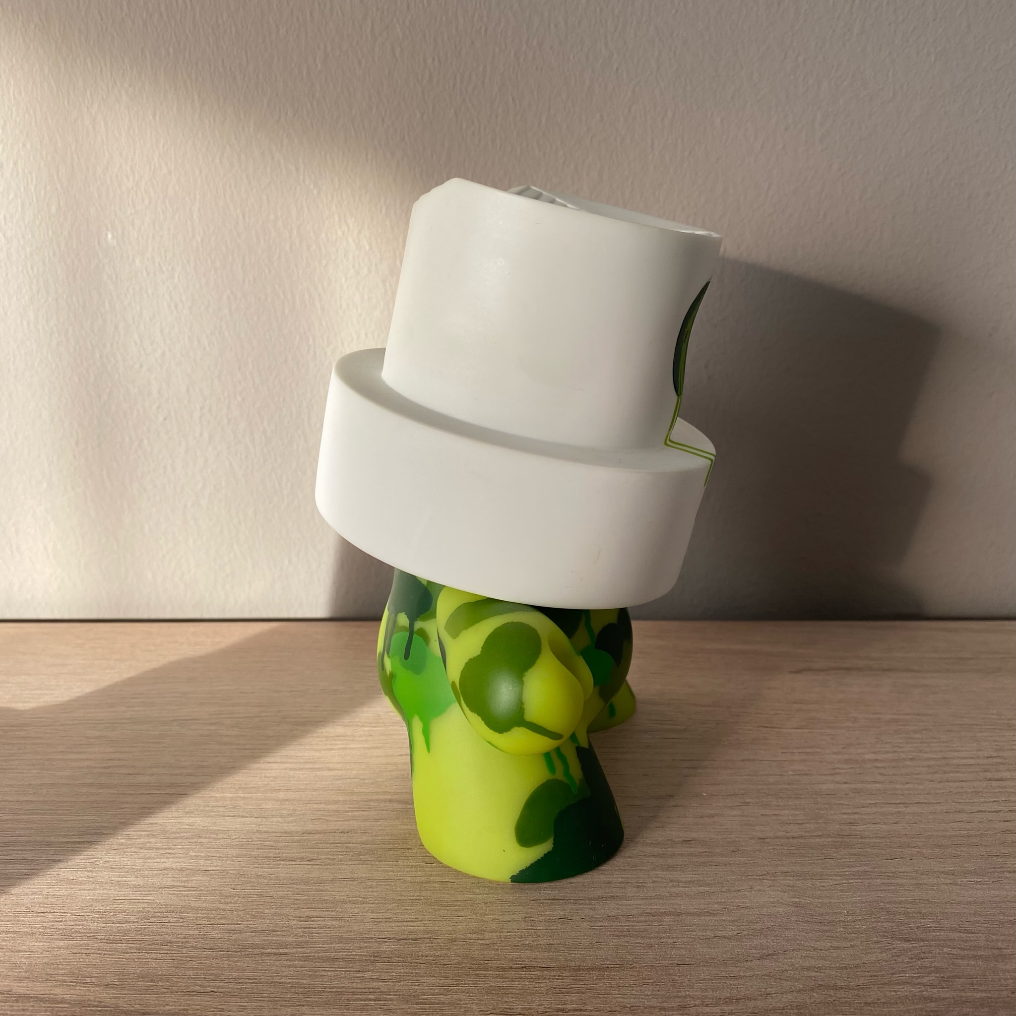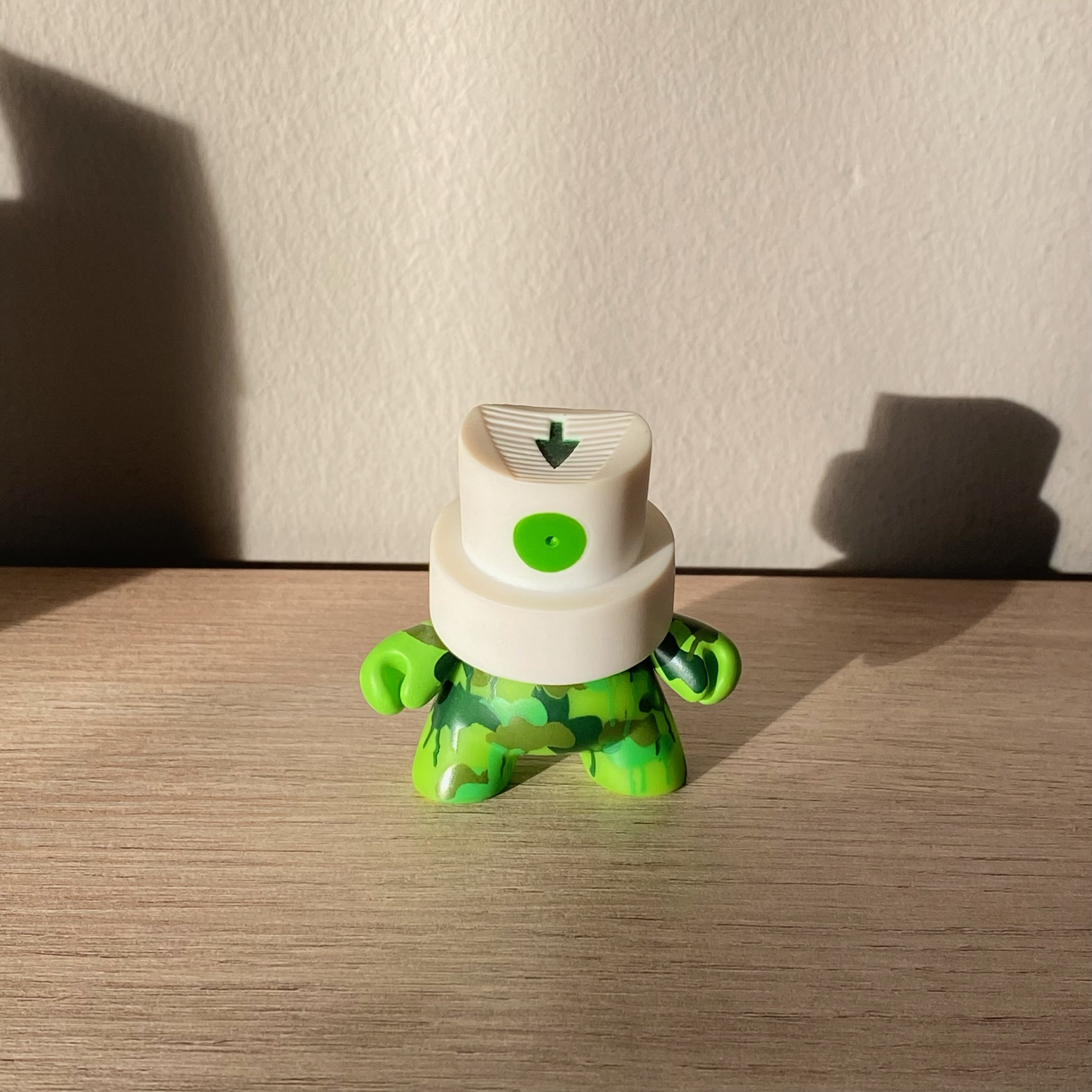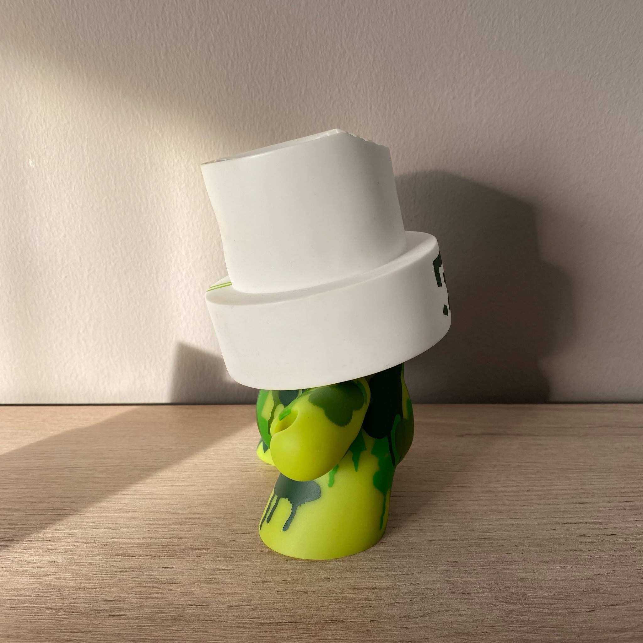 Poseable arms and swiveling head. Comes with a diorama background. Fatcaps rattle when shaken, like an actual can of spray paint.A cool camouflaged graffiti’d FATCAP! Brooklyn based street stylist Nico Berry bombs the newest 6 inch Fatcap. The True 54 Spraycanouflage edition FatCap comes with a diorama background and box that blend into a totally tagged world and Limited to 750 pieces!